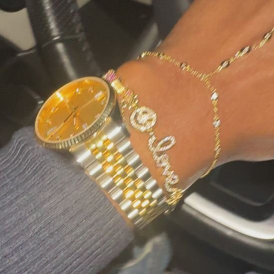 Soft, feminine, and full of thoughtful detail, the Charm of Love Bracelet features a series of delicate charms accented with shimmering crystals. Its graceful movement and subtle sparkle make it an easy statement piece - elegant enough for special occasions yet simple enough to wear every day.