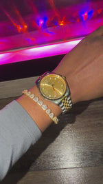 Crafted with a polished stainless steel base and a gold-tone or silver-tone finish, this bracelet is perfect for wearing alone as a subtle statement or stacking with your favorite RJ Royalty watch or tennis pieces for a more expressive look.